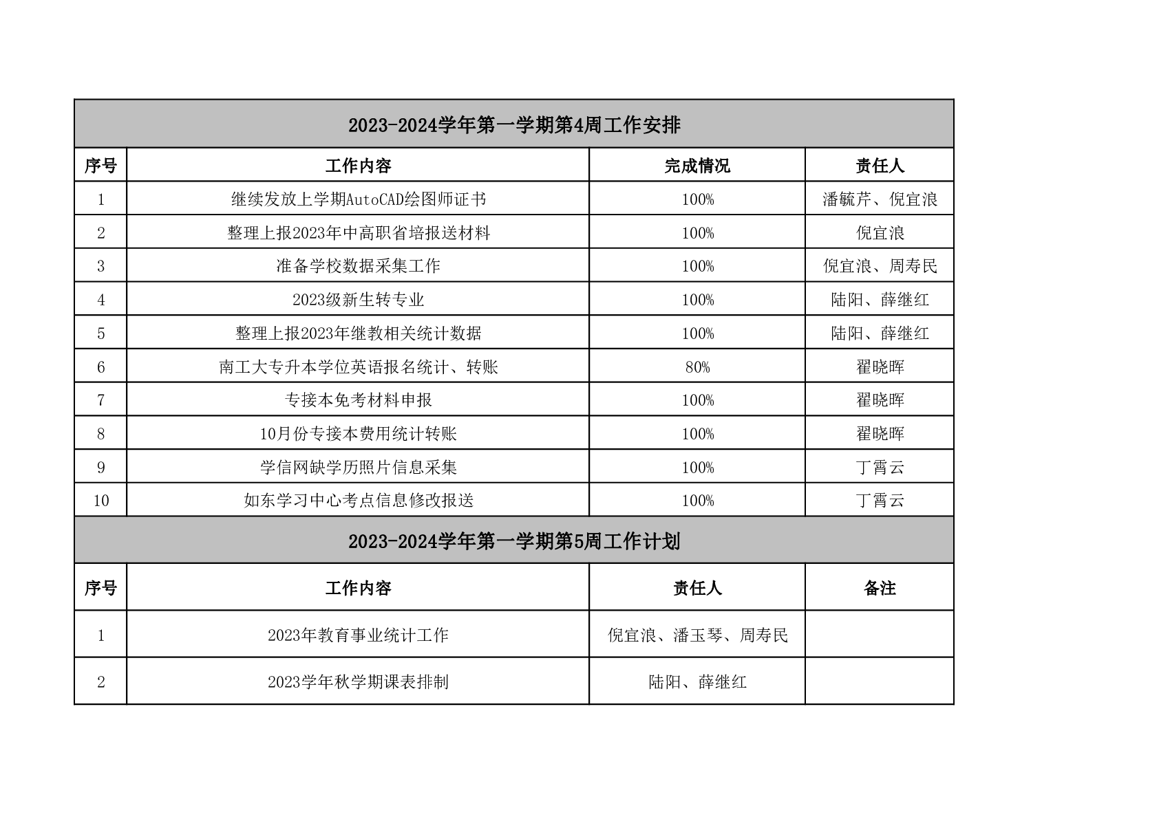2023-2024学年第一学期第5周工作安排