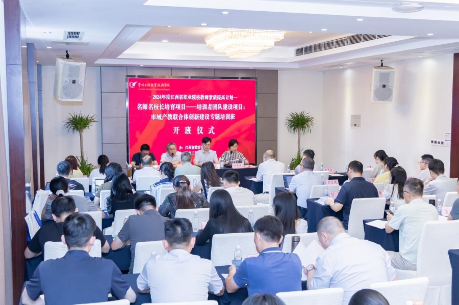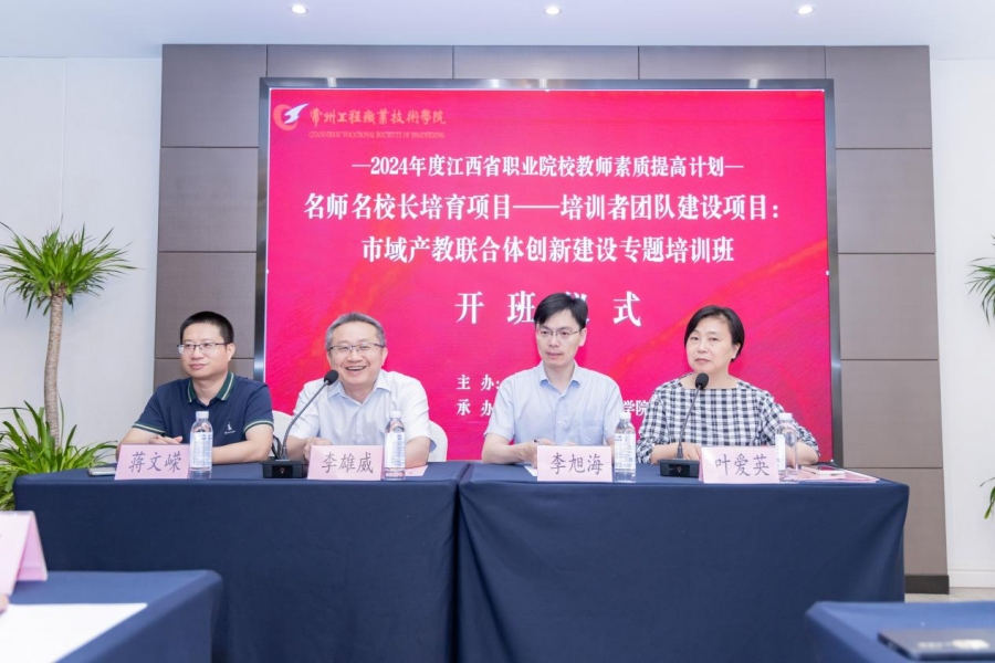 7月19日上午,江西省职业院校教师素质提高计划“名师名校长培育项目——培训者团队建设项目:市域产教联合体创新建设专题培训班”在常州新苑大酒店福苑厅顺利开班。学校党委书记李雄威,继续教育学院院长李旭海,检测学院党总支书记蒋文嵘、院长叶爱英,江西省设区市教育局、职业本科、中高职院校等44家单位50名学员参加开班仪式。开班仪式由叶爱英主持。