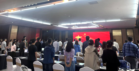 上午会议开始前,在郑中兵书记带领下集体奏唱《国歌》。