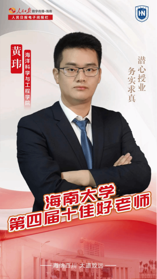 黄玮,1990年7月生,中共党员,海洋科学与工程学院副院长,硕士/博士生导师,入选海南省拔尖人才、海南省南海新星人才、中国海水淡化与水再利用学会青年委员,担任必赢76net线路官网海水淡化与综合利用创新团队负责人和党支部书记。发表高水平学术论文40余篇,担任Journal of Bionic Engineering青年编委,《粉末冶金材料科学与工程》青年编委;获邀国际/国内学术会议报告5次,担任中国材料大会分会主席1次。担任PNAS,Advanced Materials,Nano Energy,Small等期刊审稿人。作为一名中共党员,黄玮老师不仅在学术上取得了优秀的研究成就,更以其坚定的政治信念和踏实淳朴的思想品质,成为青年师生的良师益友。